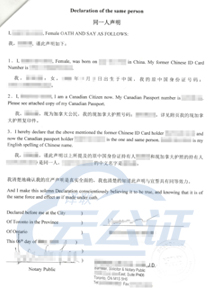 同一人声明公证